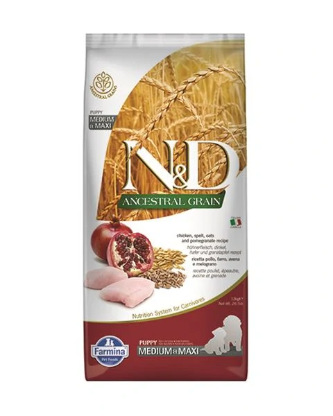 Farmina N&D dog AG puppy medium & maxi, chicken, spelt, oats & pomegranate 12 kg